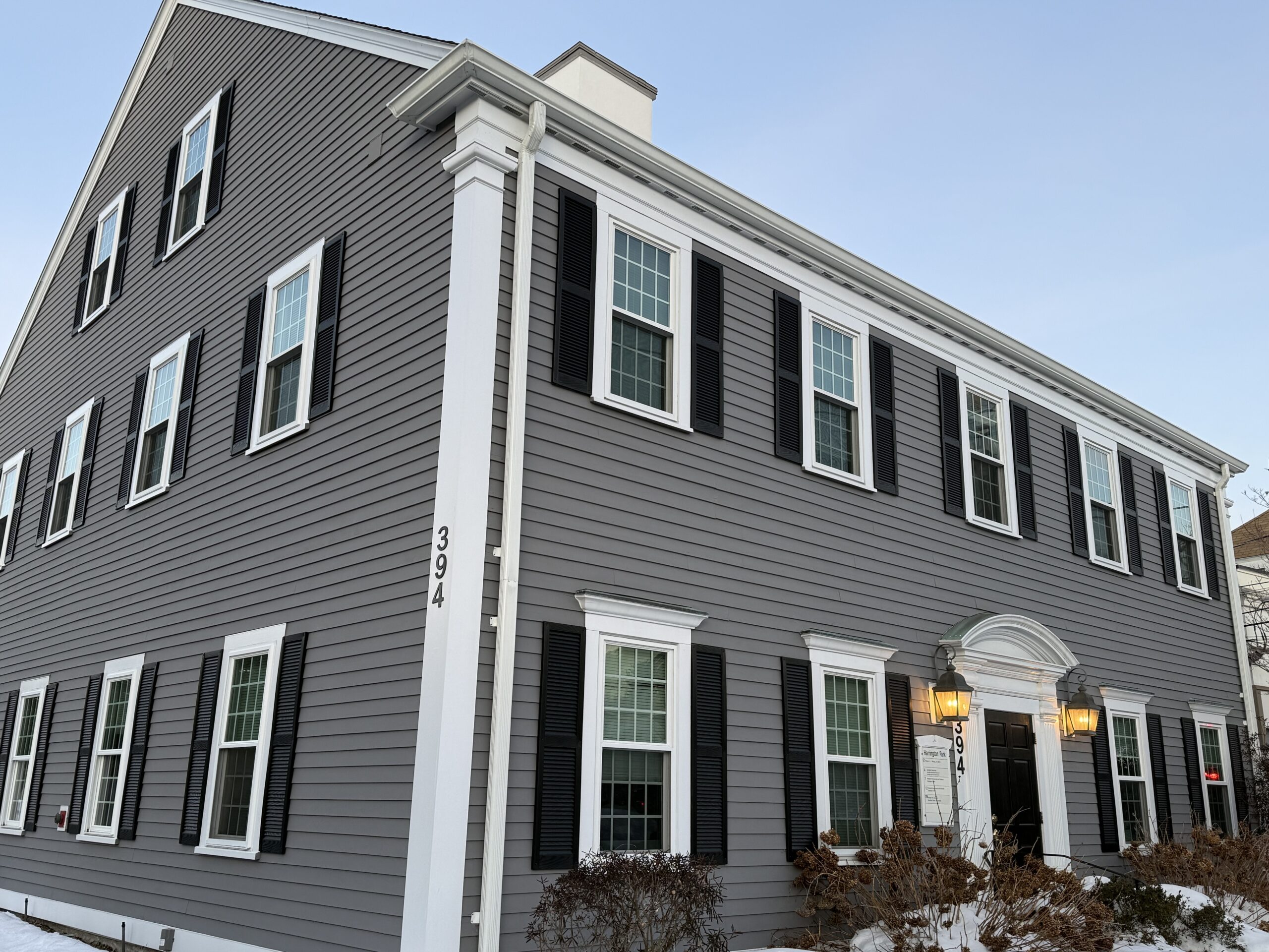 From Rt 2A (Mass Ave), Rt 16, or Rt 60, get on Summer Street, Arlington toward Lexington. Summer Street changes the name to Lowell Street in Lexington. You will drive by McClennen park on your right-hand side. The intersection of Maple Street & Winchester Road, and continue for approximately 1/4 mile. Then, turn left into the driveway for the Harrington Park building, just before the next intersection. You will see the long driveway from Lowell Street. Colonial light grey colored building with blue window shutters. The building has 4 chimneys. We are located directly across the street from the big blue “Golden Paws” sign. If you passed Bank North on the right side, you went too far. The second door on the 1st floor, Suite 10.